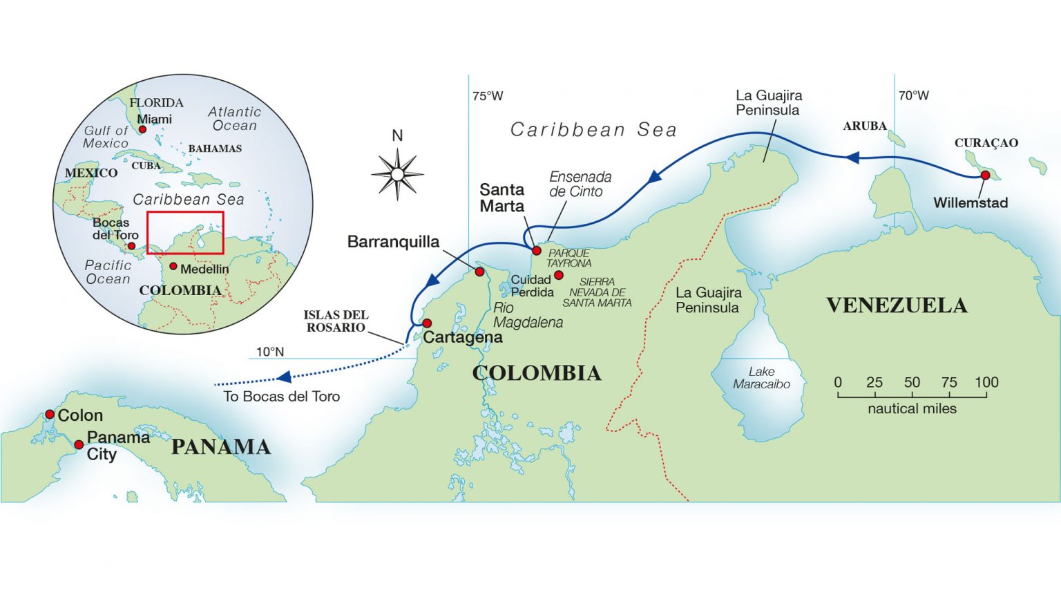 Day 6: Guana Island: A two-hour sail (22 nautical miles) takes the vessel to Monkey Point on Guana Island, a private natural sanctuary.37 The protected marine reserve here is ideal for turtle spotting and observing schools of baitfish and tarpon along the rocky shoreline.37