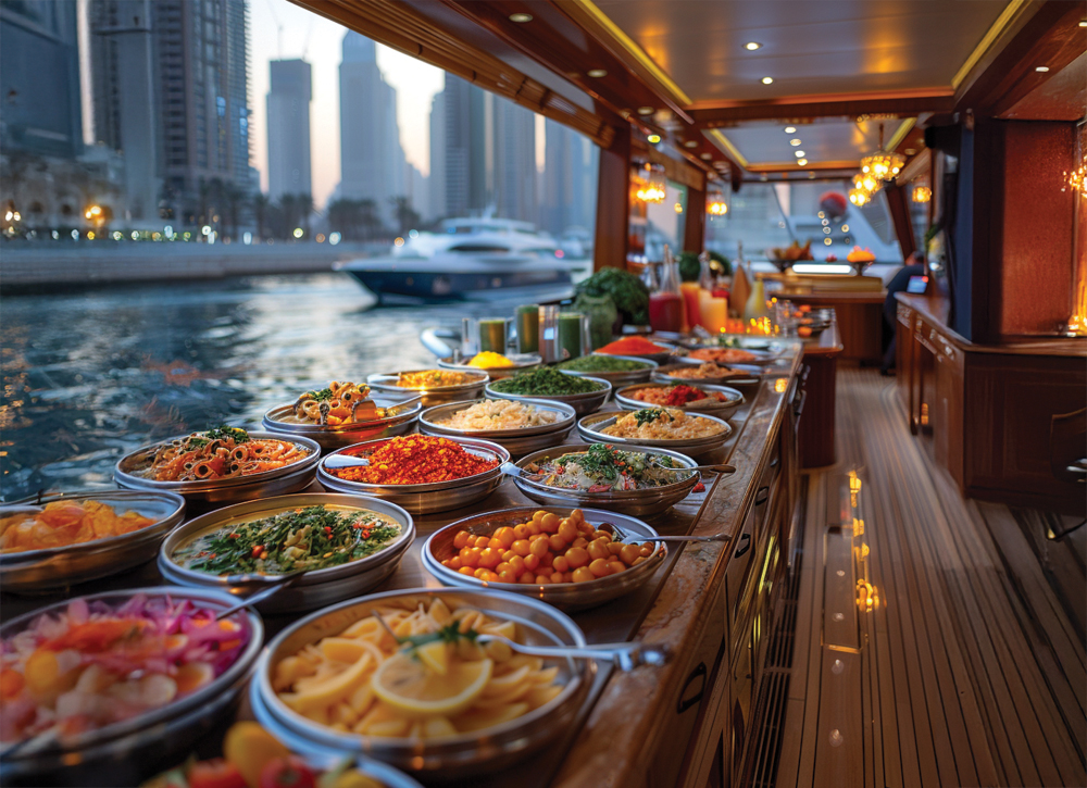 The Private Chef Fee: The fee for a dedicated private chef is generally quoted per person for the meal or as a set rate for their services, in addition to the yacht charter cost. Gourmet dining packages typically start from around AED 200–500 or more per person, depending on the menu complexity and ingredients requested.