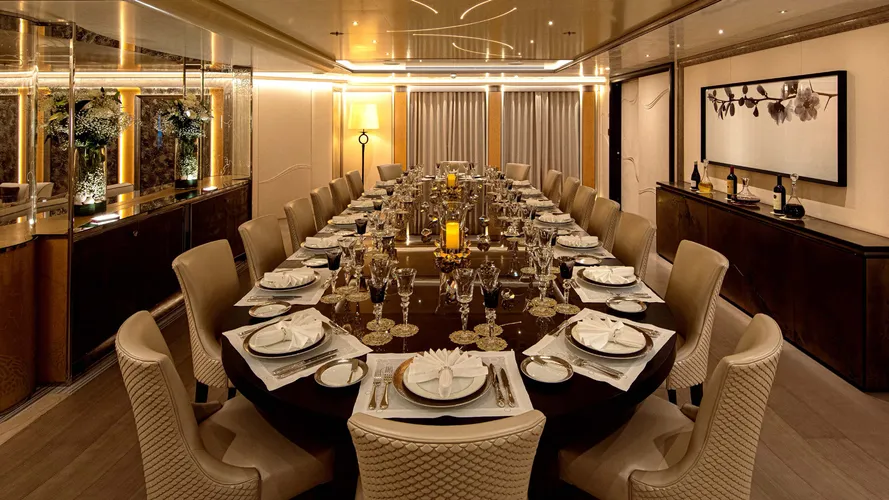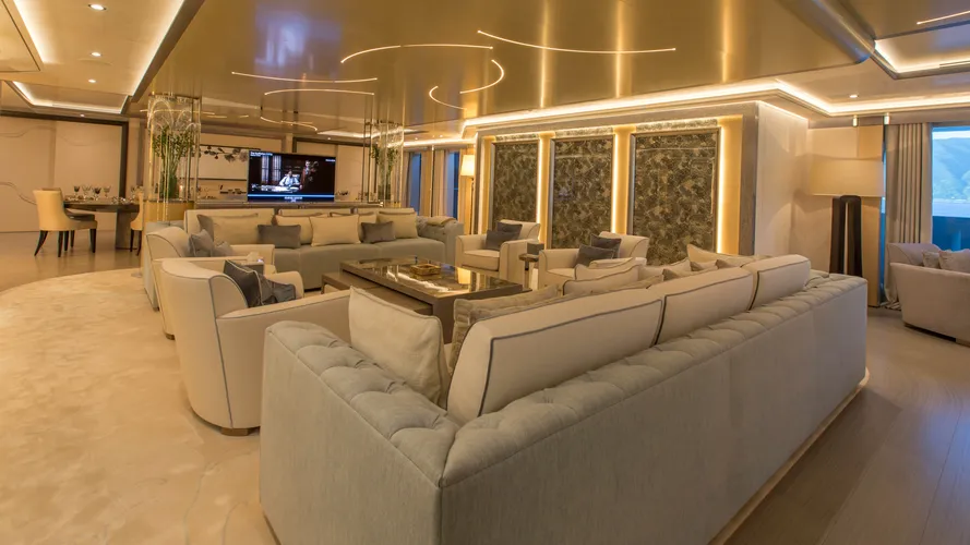 The onboard experience emphasizes personal luxury and holistic wellness. Amenities include a mosaic hammam, a sauna, a dedicated massage room, and a gym equipped with Technogym equipment offering sea views.30 Leisure facilities are extensive, featuring a dedicated beach club, a sky lounge with a sit-up bar, and a cinema boasting a library of over 1,300 films.30 Her deck spaces are vast, perfect for al fresco dining and leisure cruising, complemented by one of the largest swimming pools installed on a superyacht globally.31